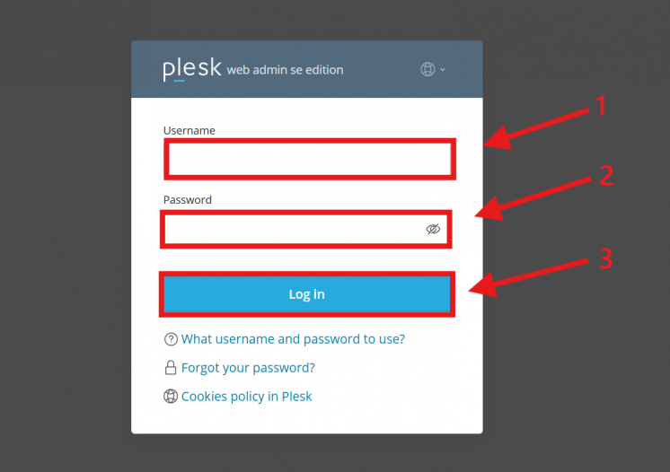 Username dan Password Plesk — masukkan username dan password yang telah di buat