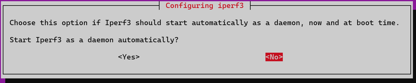 sudo apt update sudo apt install iperf3 -yJika terdapat keterangan berikut pilih No :