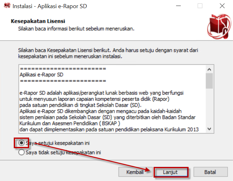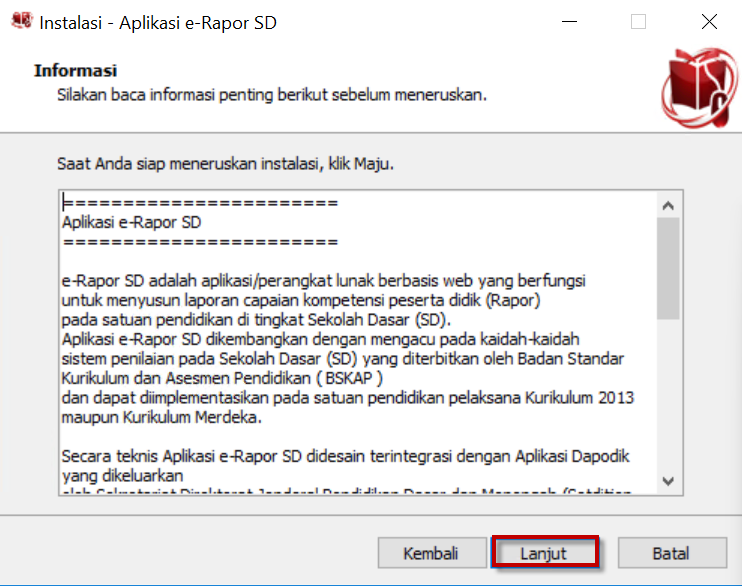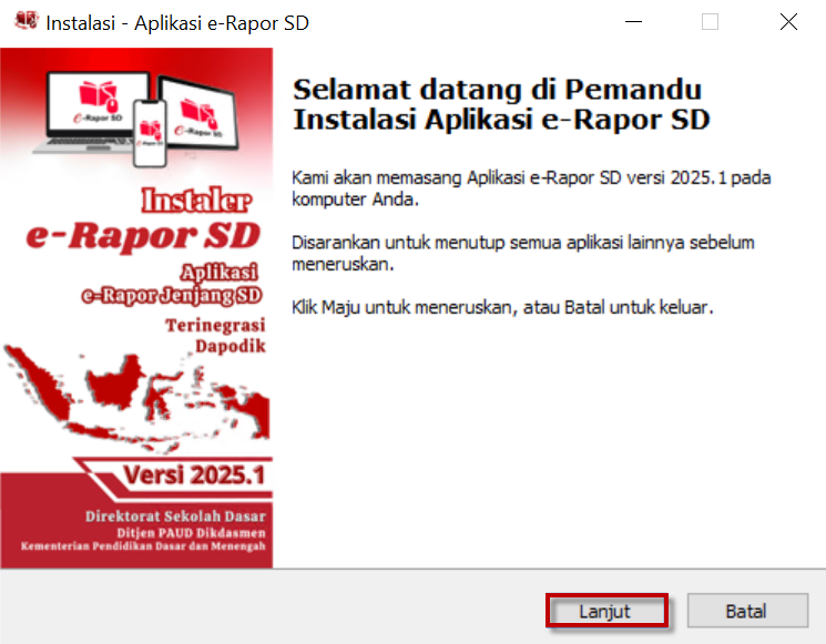 Jika belum mendownload bisa download disini - Jalankan Installer e-Rapor SD 2025 (X64)