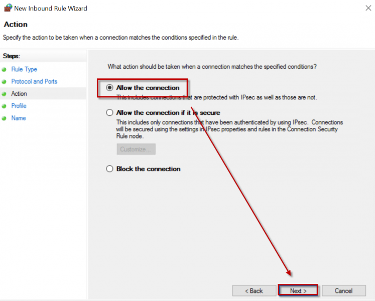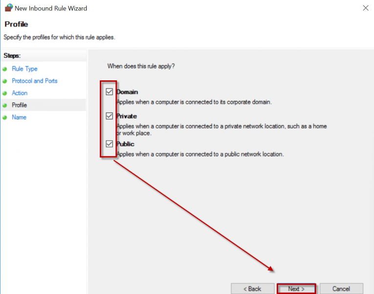- Centang semua opsi aturan yang tersedia, lalu klik Next.