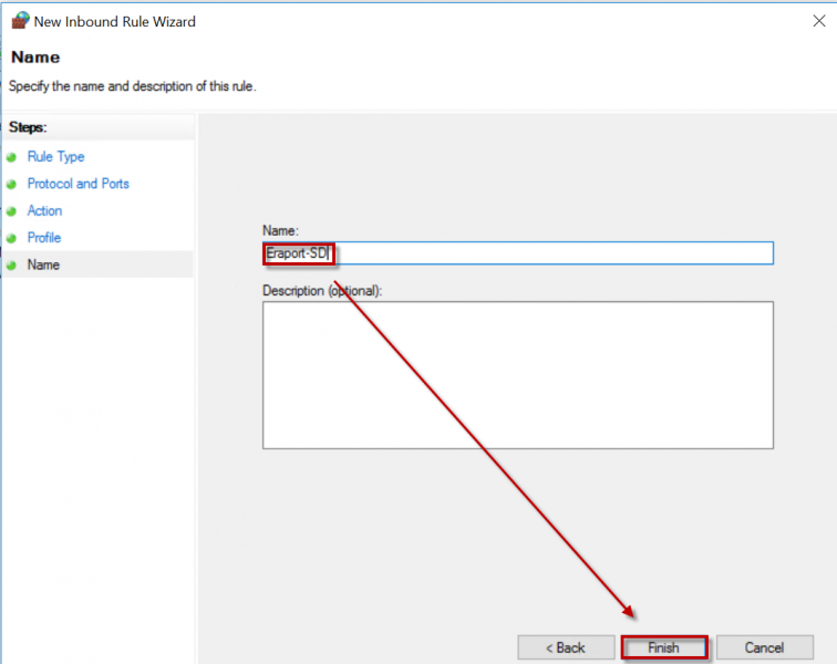 Selain instalasi aplikasi, konfigurasi firewall menjadi langkah penting. Port 8535 harus dibuka pada Windows Firewall agar aplikasi e-Rapor SD dapat diakses dari luar jaringan (publik). Tanpa membuka port ini, aplikasi hanya bisa diakses secara lokal di server.