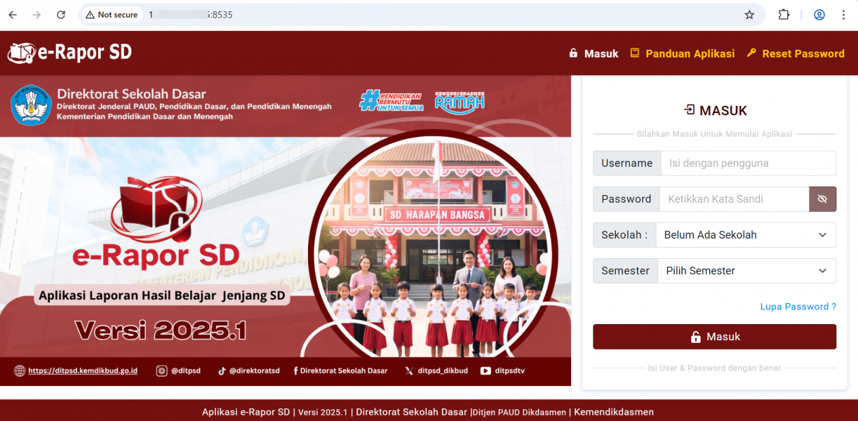 - Komputer atau VPS belum pernah terpasang e-Rapor SD