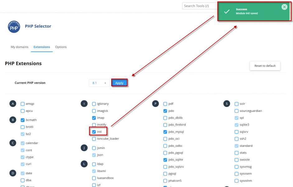 - Kemudian checklist intl kemudian akan muncuk notifikasi Success dan klik Apply
