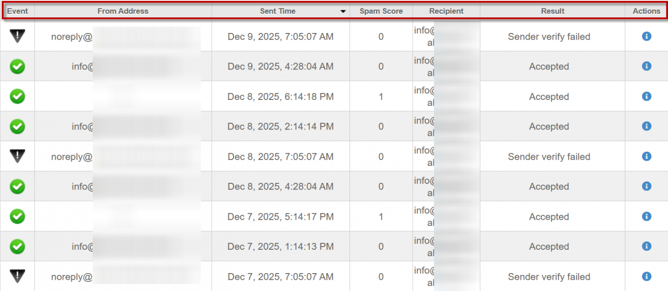 - Sent Time : Menunjukkan waktu email diproses/dikirim