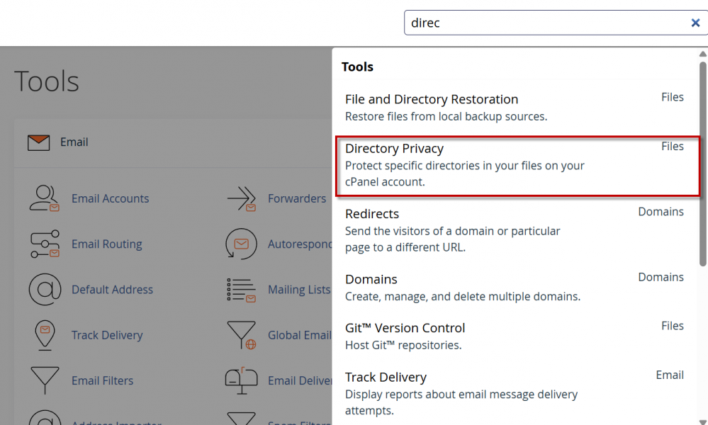 Cari menu “Directory Privacy” di dashboard cPanel. Klik untuk membukanya.