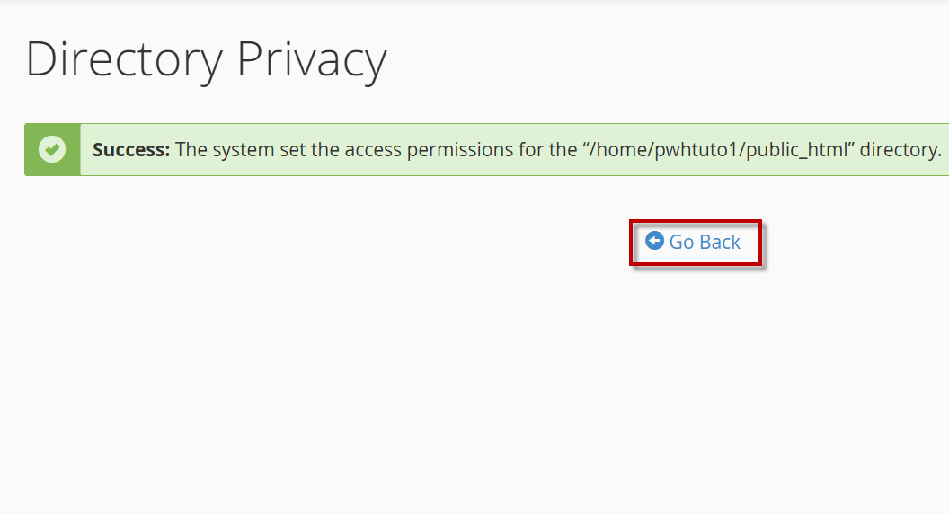 - Akan muncul notifikasi berikut kemudian klik Go Back