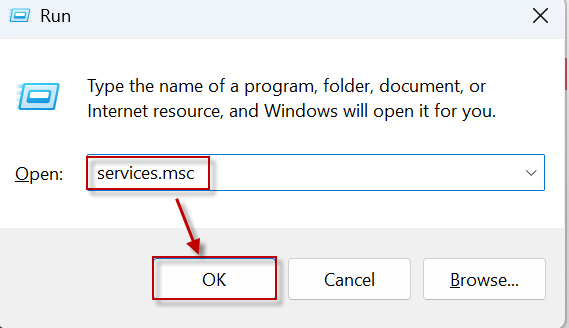 Tekan Win + R, ketik services.msc, tekan Enter.
