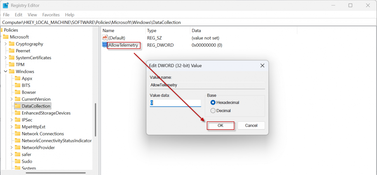 HKEY_LOCAL_MACHINE\SOFTWARE\Policies\Microsoft\Windows\DataCollection -