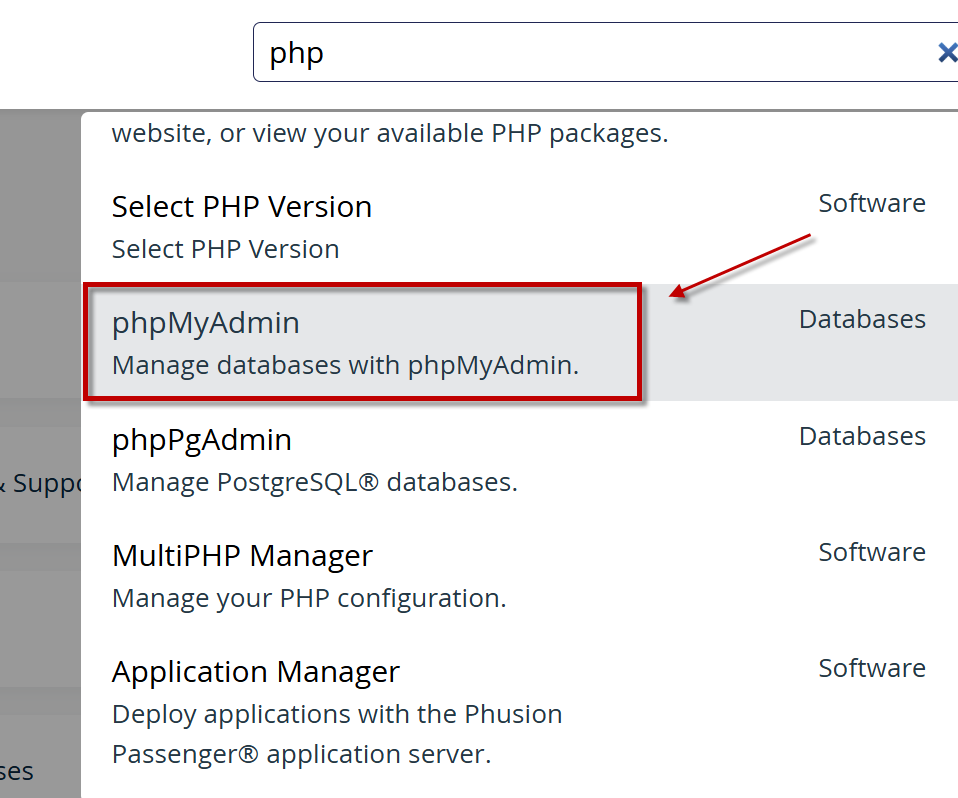 - Kembali ke halaman utama cPanel lalu buka menu phpMyAdmin.