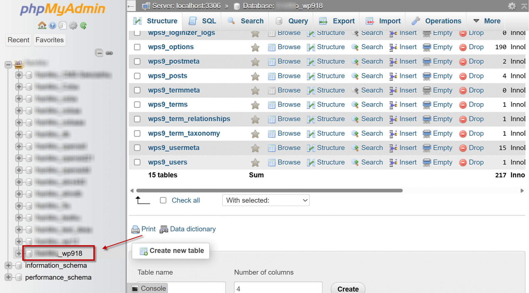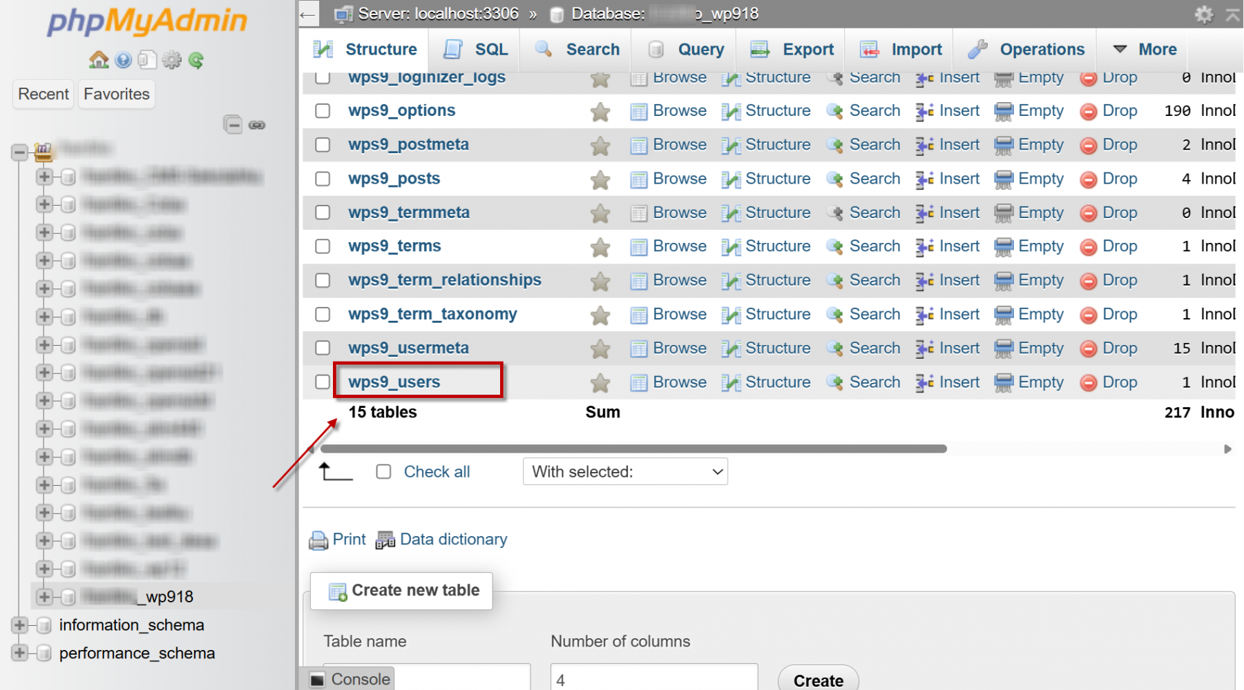 - Cari tabel dengan nama wp_users (prefix bisa berbeda, misalnya wp01_users atau wpabc_users).