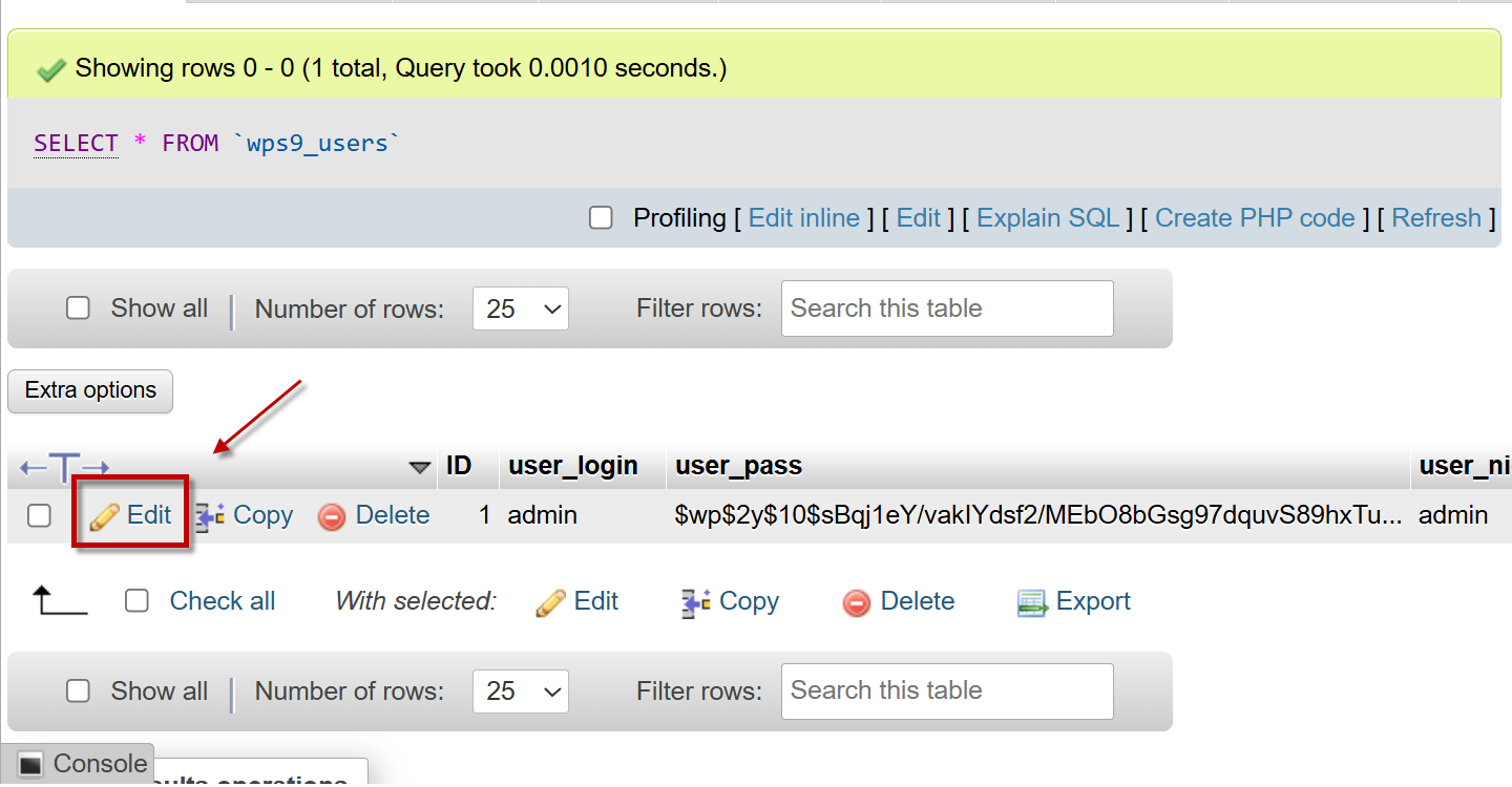 Cara Pertama : Mengubah Password WordPress melalui phpMyadmin