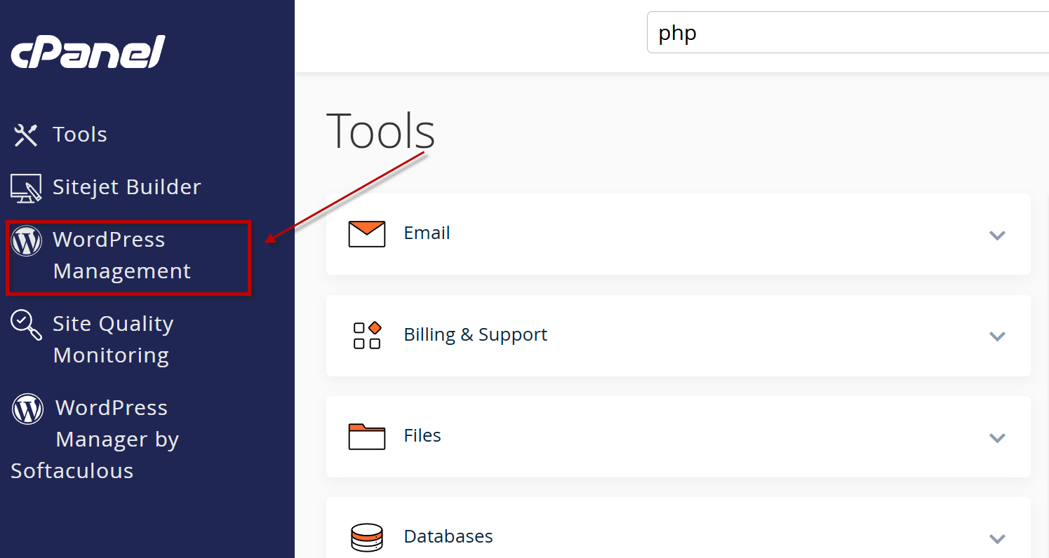 - Masuk ke menu WordPress Management atau WP Toolkit.
