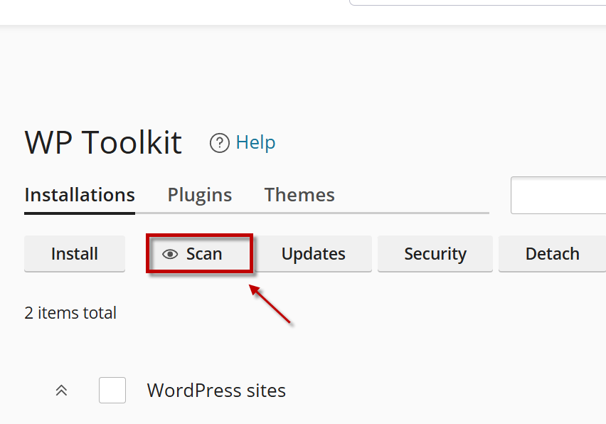 - Jika website belum terdeteksi, klik tombol Scan untuk memindai instalasi WordPress.