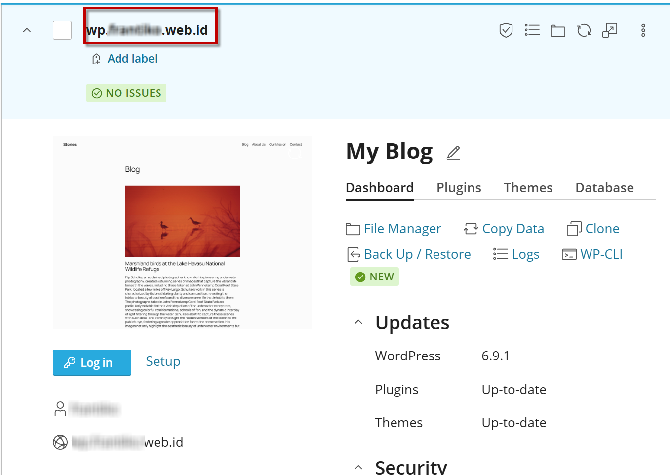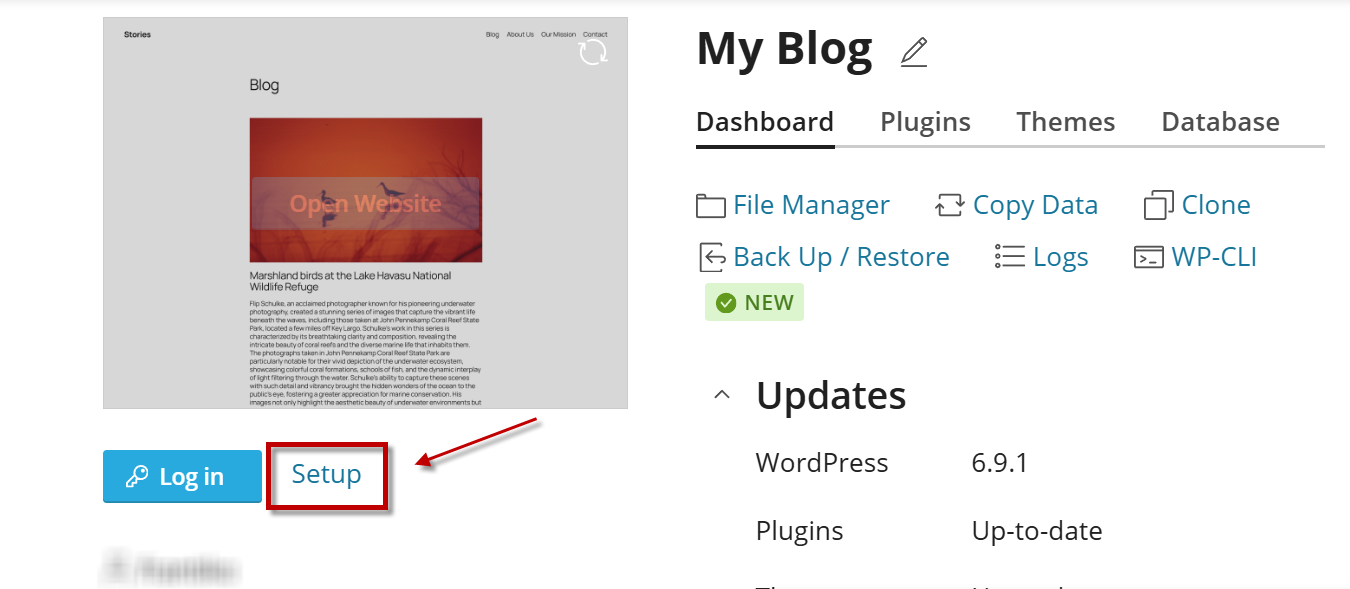 - Pilih domain WordPress yang ingin direset password-nya.