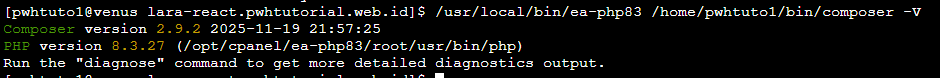 Sementara itu, PHP terbaru yang Anda aktifkan di cPanel berada di jalur berbeda, misalnya pada path /opt/cpanel/ea-php83/root/usr/bin/php. Composer tidak otomatis memakai jalur tersebut kecuali Anda memintanya secara eksplisit.