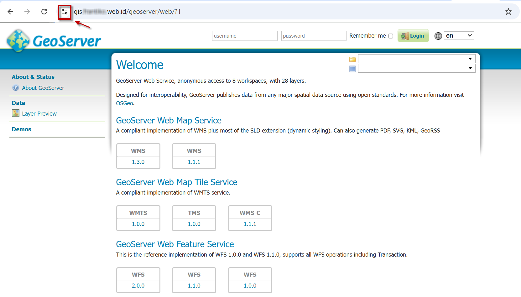 server { listen 80; server_name gis.domainku.web.id; location / { proxy_pass http://127.0.0.1:8080/geoserver/; proxy_set_header Host $host; proxy_set_header X-Real-IP $remote_addr; proxy_set_header X-Forwarded-For $proxy_add_x_forwarded_for; } }Catatan : Ganti gis.domainanda.com menjadi domain yang ingin digunakan