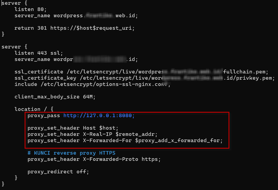 - X-Forwarded-Proto memastikan WordPress mengenali HTTPS