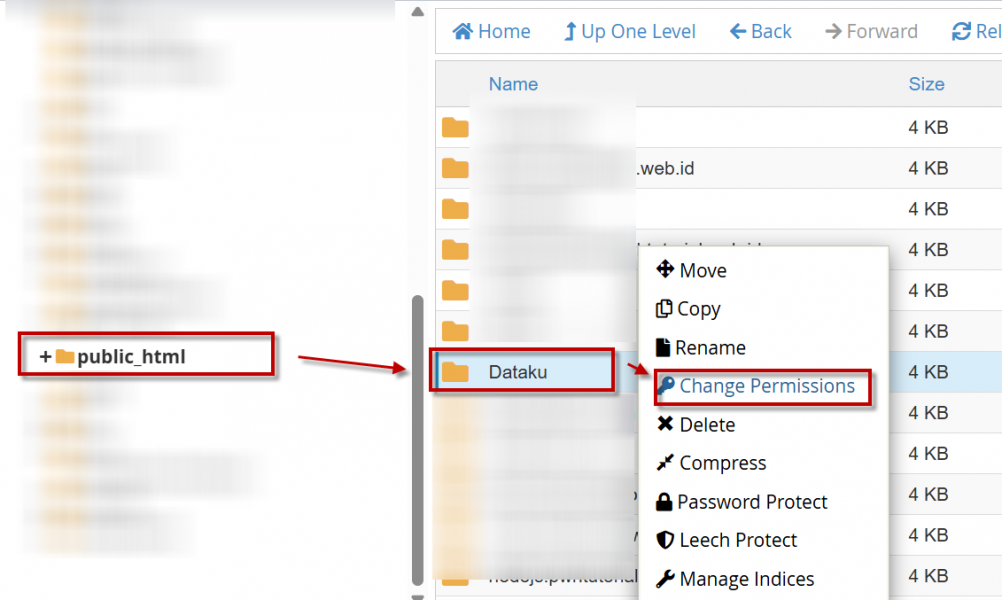 - Klik kanan file atau folder yang ingin diubah permission-nya.Pilih Change Permissions.