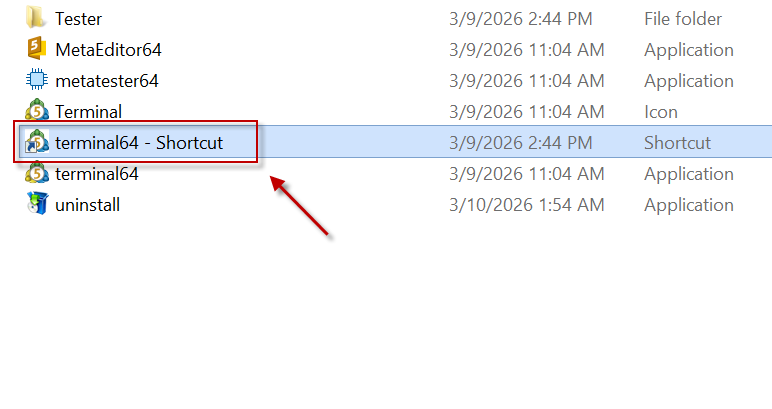 - Jalankan MetaTrader menggunakan shortcut tersebut agar mode portable aktif.