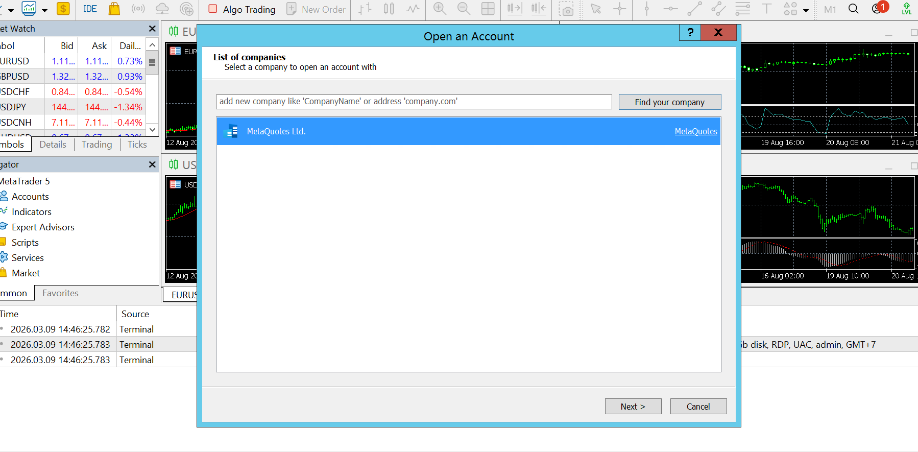 Menjalankan beberapa MetaTrader dalam satu VPS dapat dilakukan dengan menggunakan portable mode sehingga setiap MetaTrader berjalan secara terpisah tanpa saling mengganggu data maupun konfigurasi. Agar VPS tetap stabil, setiap MetaTrader sebaiknya ditempatkan pada folder yang berbeda, serta jumlah chart dan indikator yang digunakan perlu dibatasi untuk menghindari penggunaan CPU dan RAM yang berlebihan. Selain itu, pengelolaan akun trading dapat dilakukan dengan mudah melalui login akun pada masing-masing MetaTrader atau melalui Navigator. Dengan pengaturan instalasi dan optimasi yang tepat, beberapa akun trading dapat dijalankan secara bersamaan dalam satu VPS dengan lebih stabil dan efisien.