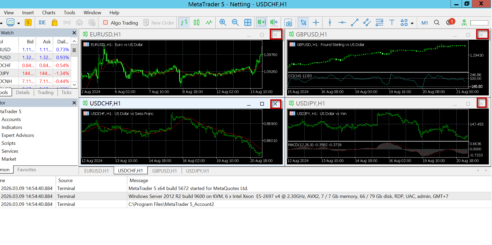 Catatan: Buka hanya chart pair yang dibutuhkan untuk trading. Jika menggunakan indikator, gunakan seperlunya agar tidak membebani VPS.