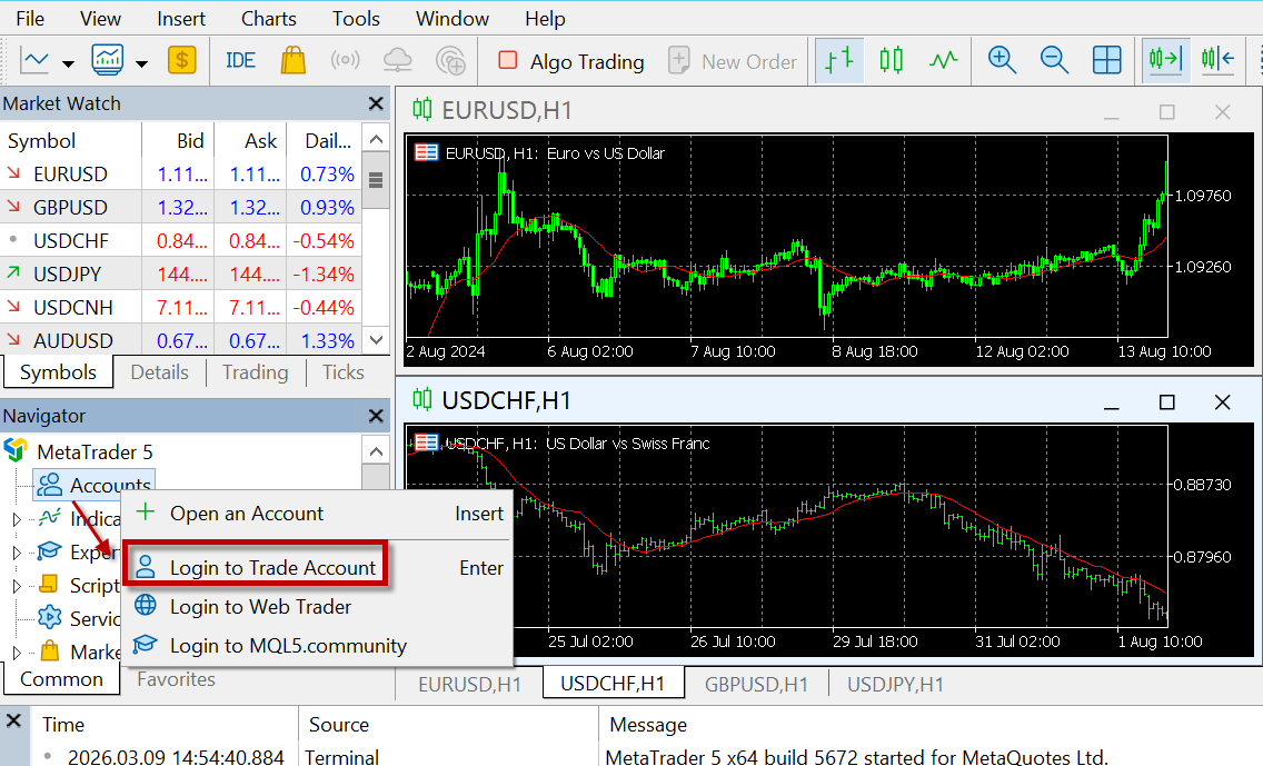 - Pilih Login to Trade Account