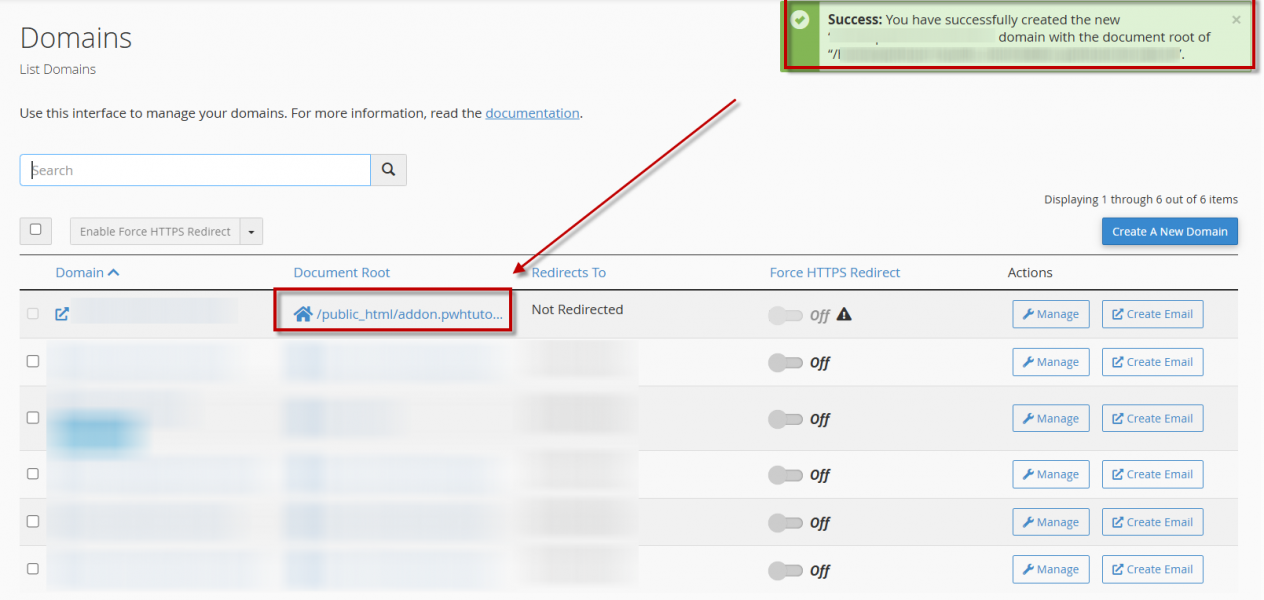 Jika Addon Domain berhasil ditambahkan, tampilan akan muncul seperti pada contoh gambar di bawah ini.