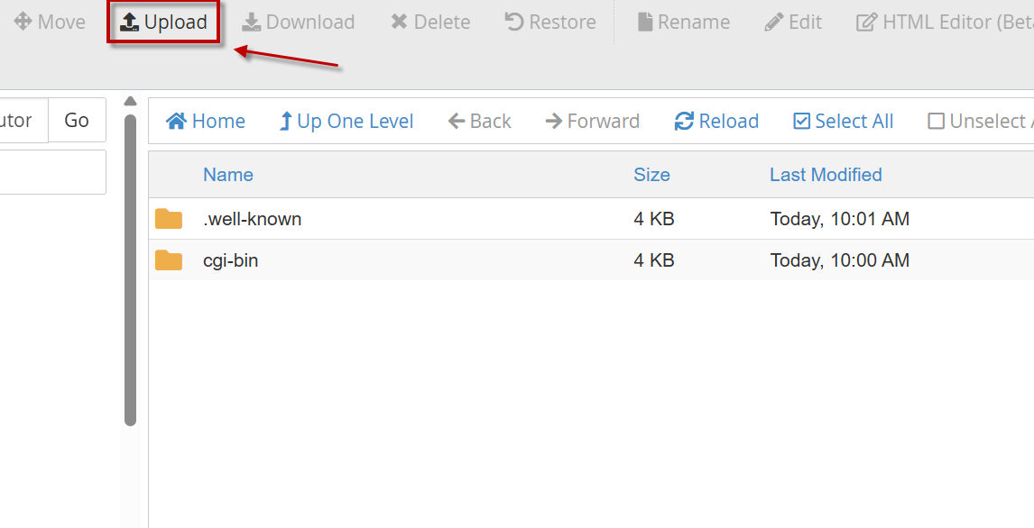 Untuk mengunggah file, Anda dapat mengklik folder Document Root yang ditampilkan.