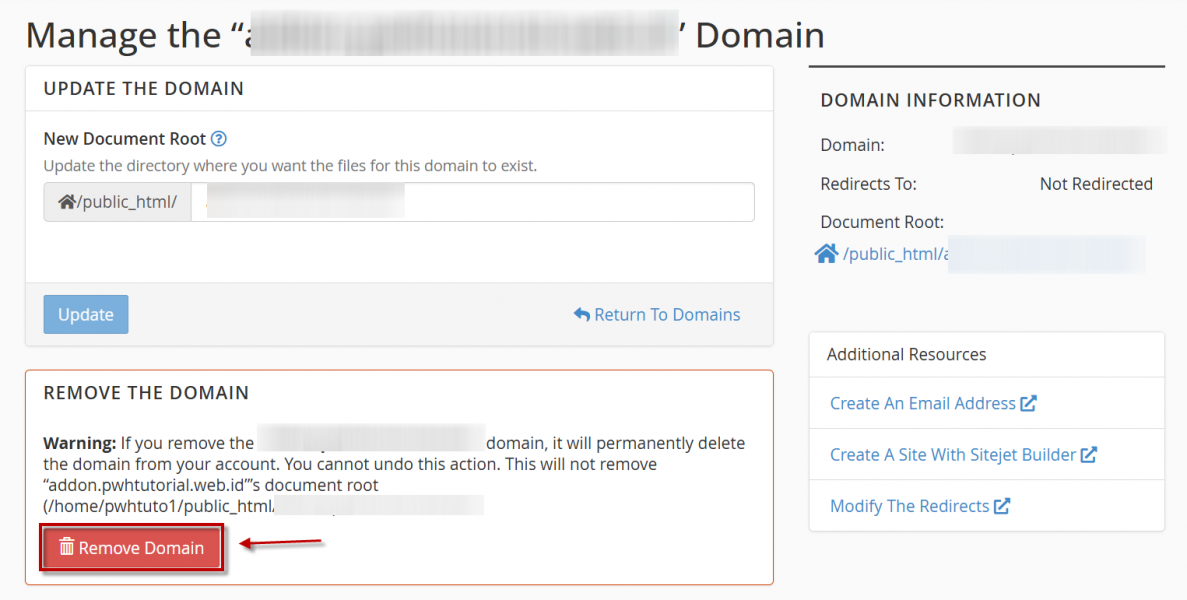 Jika addon domain tidak lagi digunakan, Anda dapat menghapusnya dengan mudah: