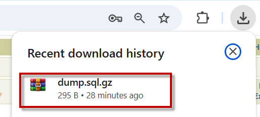 Browser akan mengunduh file SQL berisi seluruh cadangan database Anda. Simpan file ini di lokasi aman di komputer Anda.