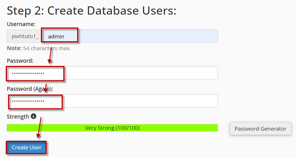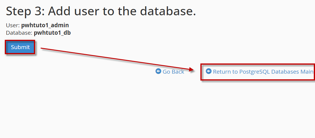 - Kemudian klik submit untuk add user kedalam database yang telah di buat