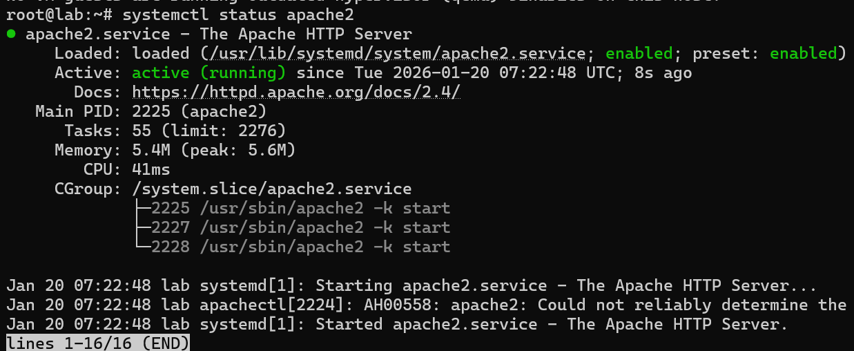 Output :systemctl status apache2