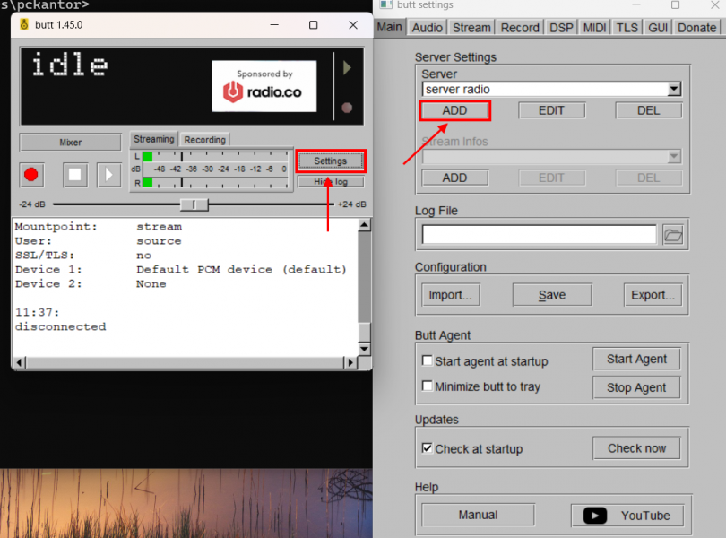 - Konfigurasi BUTT untuk Terhubung ke Icecast