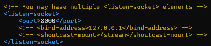 Secara default, Icecast berjalan di port 8000. Jika ingin mengubah, edit bagian: - Konfigurasi Hostname