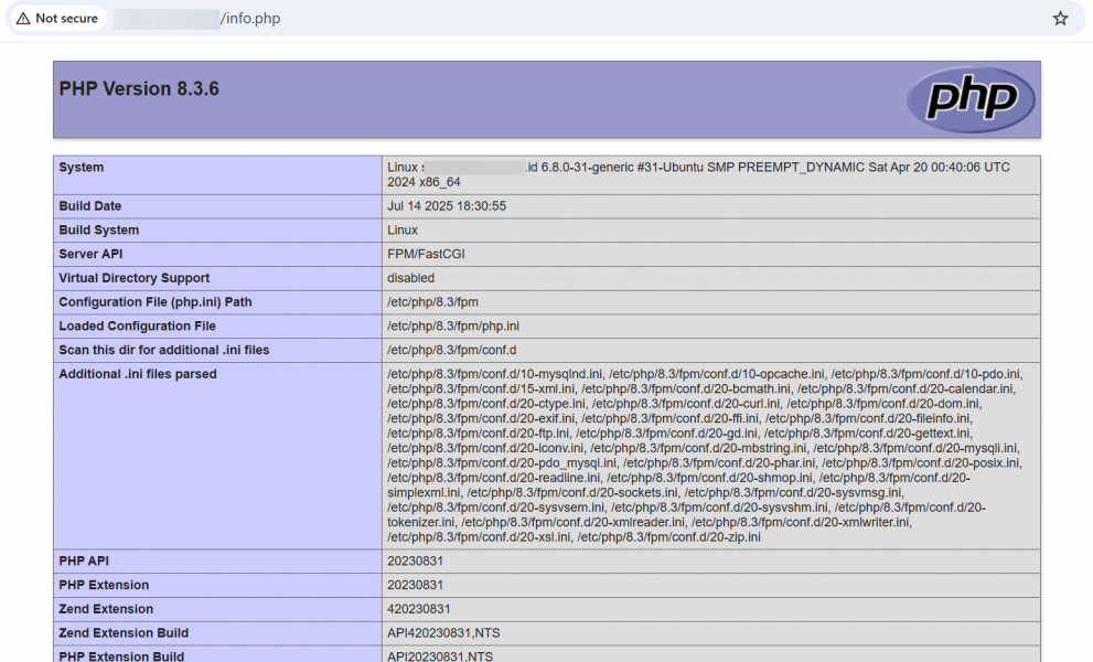 http://IP_SERVER/info.phpJika halaman informasi PHP muncul, berarti LEMP Stack sudah berjalan sempurna.