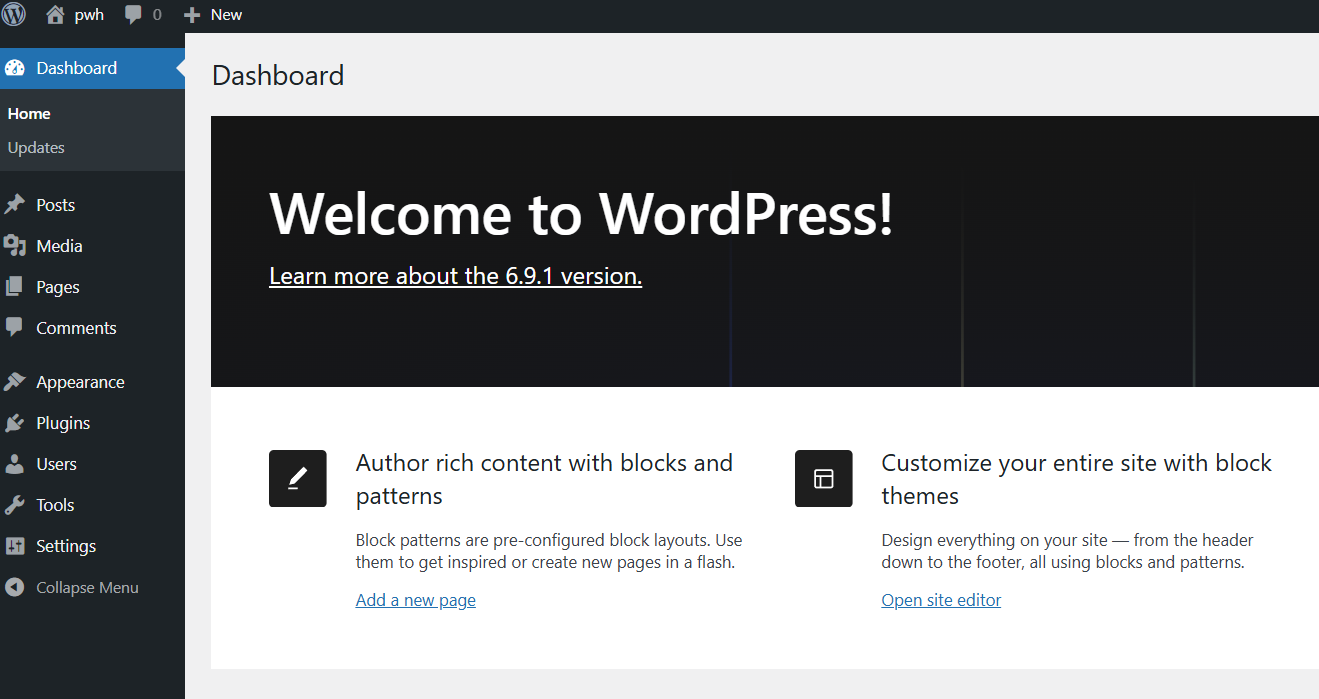 - WordPress sudah siap digunakan.
