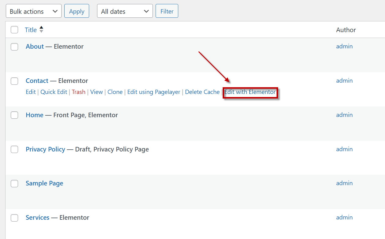 - Masuk ke halaman yang ingin diedit, kemudian klik Edit with Elementor