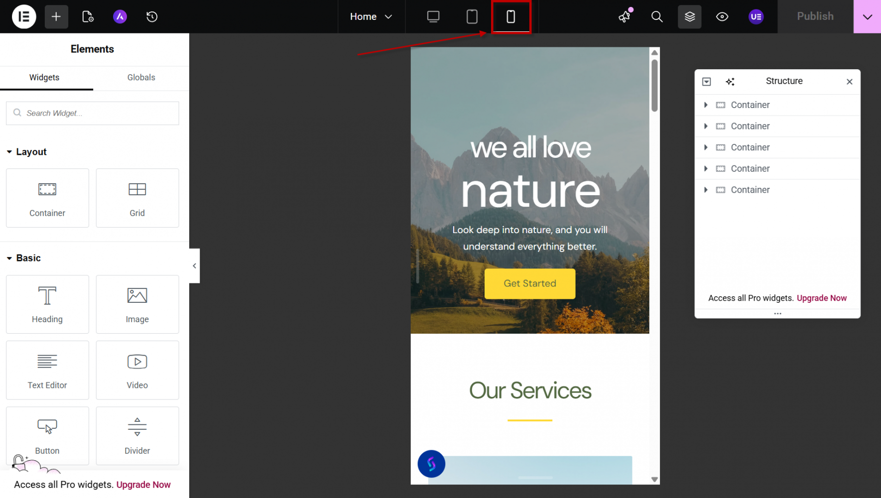 Untuk mengatur tampilan mobile, bisa disesuaikan saat mengedit di dalam Elementor: