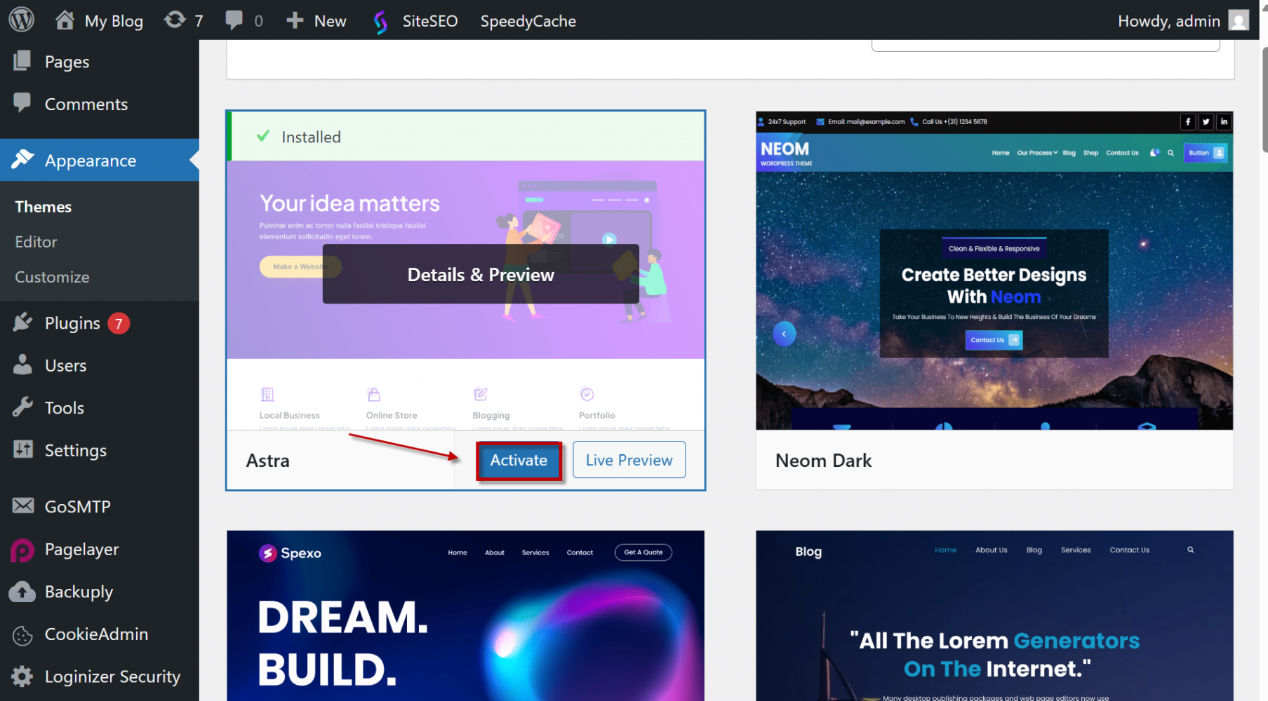 - Setelah tema aktif, website Anda akan langsung menggunakan tampilan Astra.