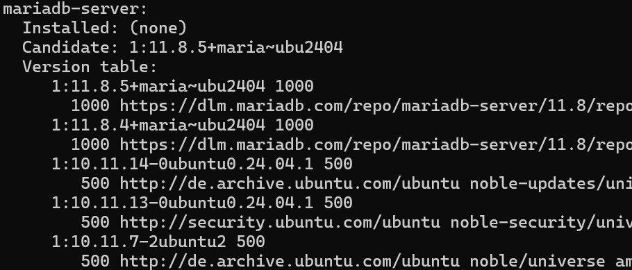 apt-cache policy mariadb-server