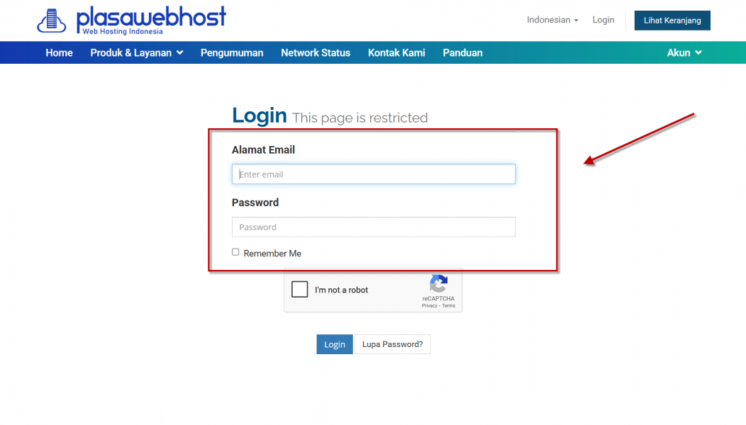 - Login ke Client Area Plasawebhost.