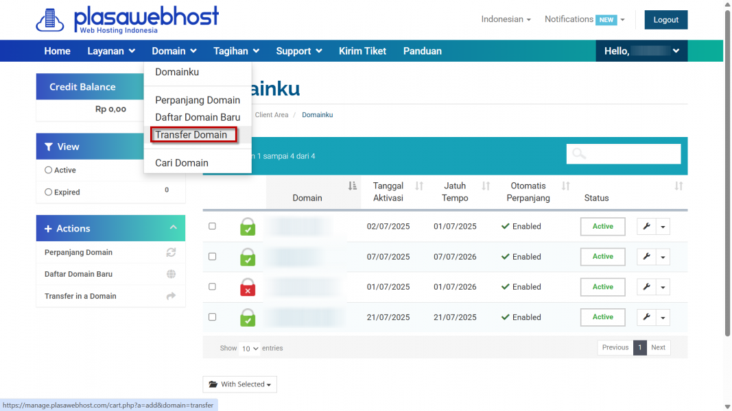 Cara Transfer Domain ke Plasawebhost